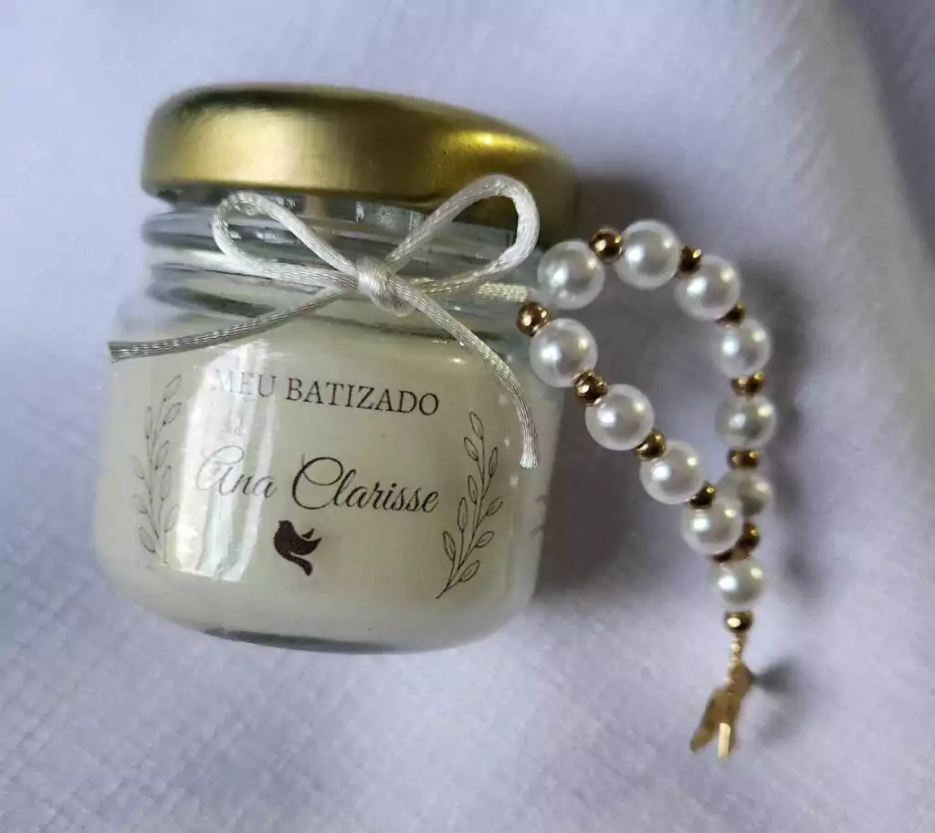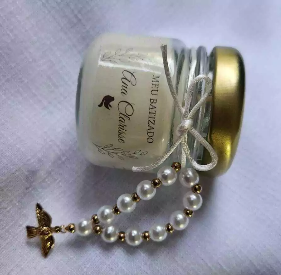 - Velas Aromáticas de 40g com Terço: Nossas velas são feitas à mão com ingredientes de alta qualidade, proporcionando uma fragrância suave e relaxante. Cada vela vem acompanhada de um lindo tercinho, perfeito para abençoar essa ocasião tão importante.